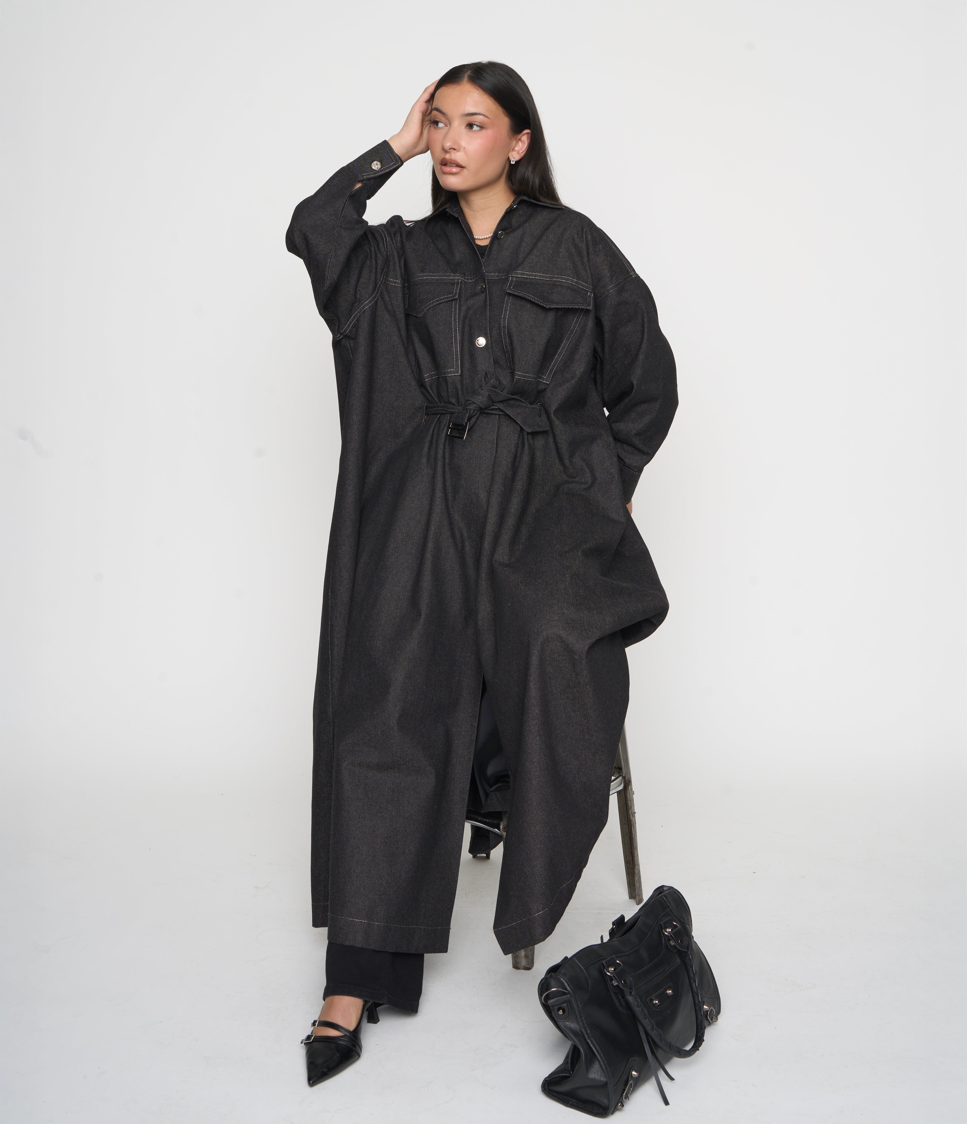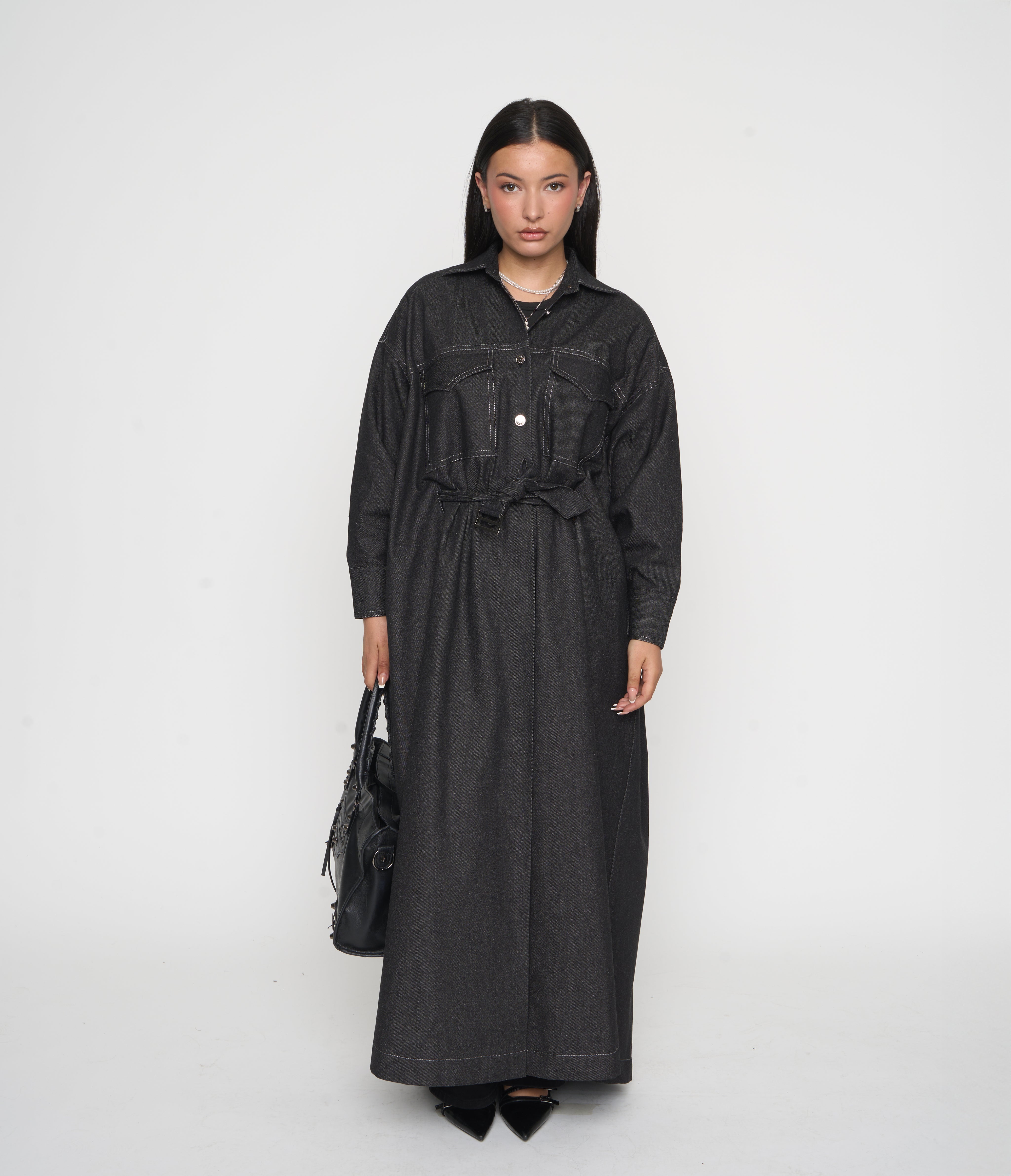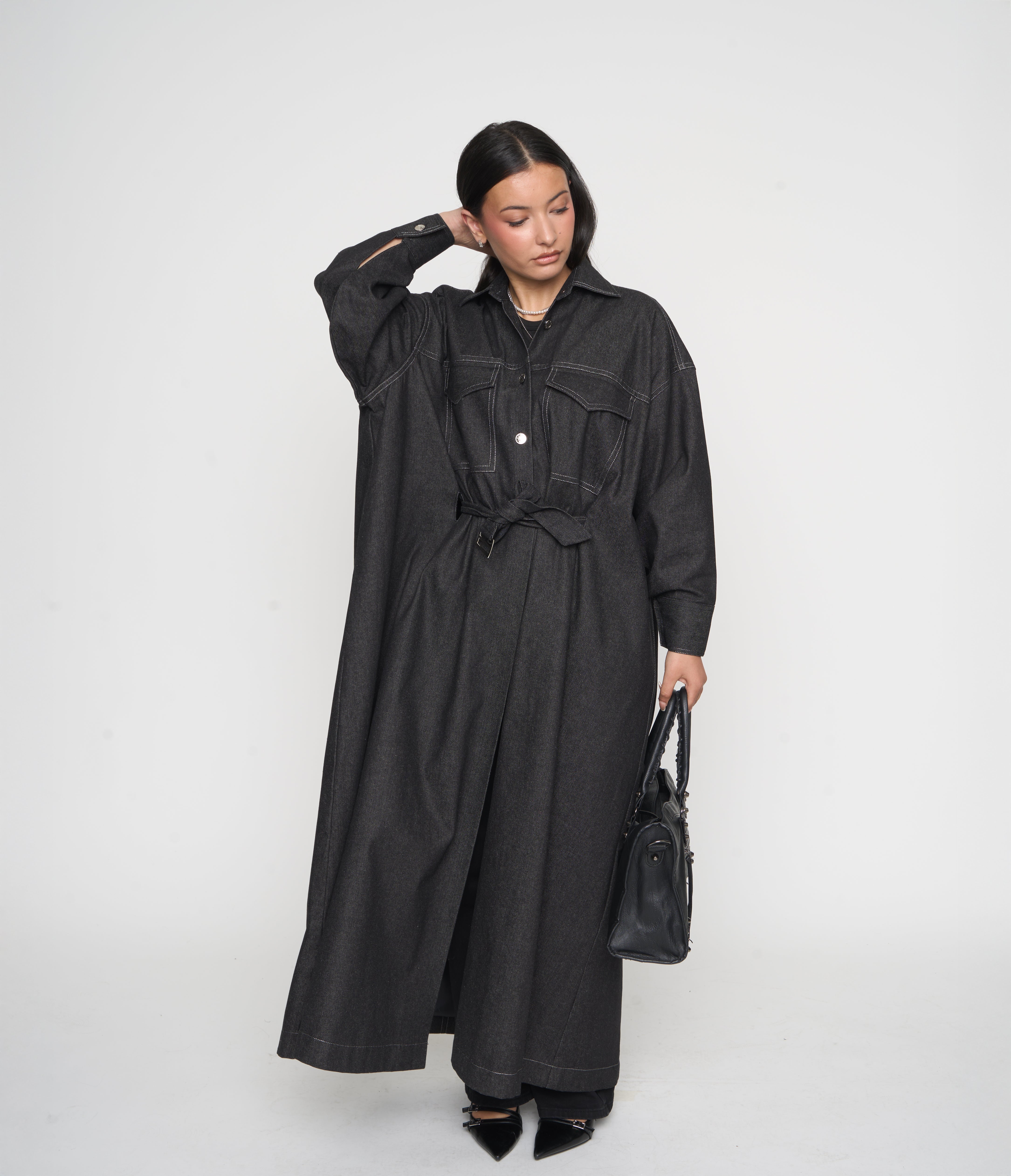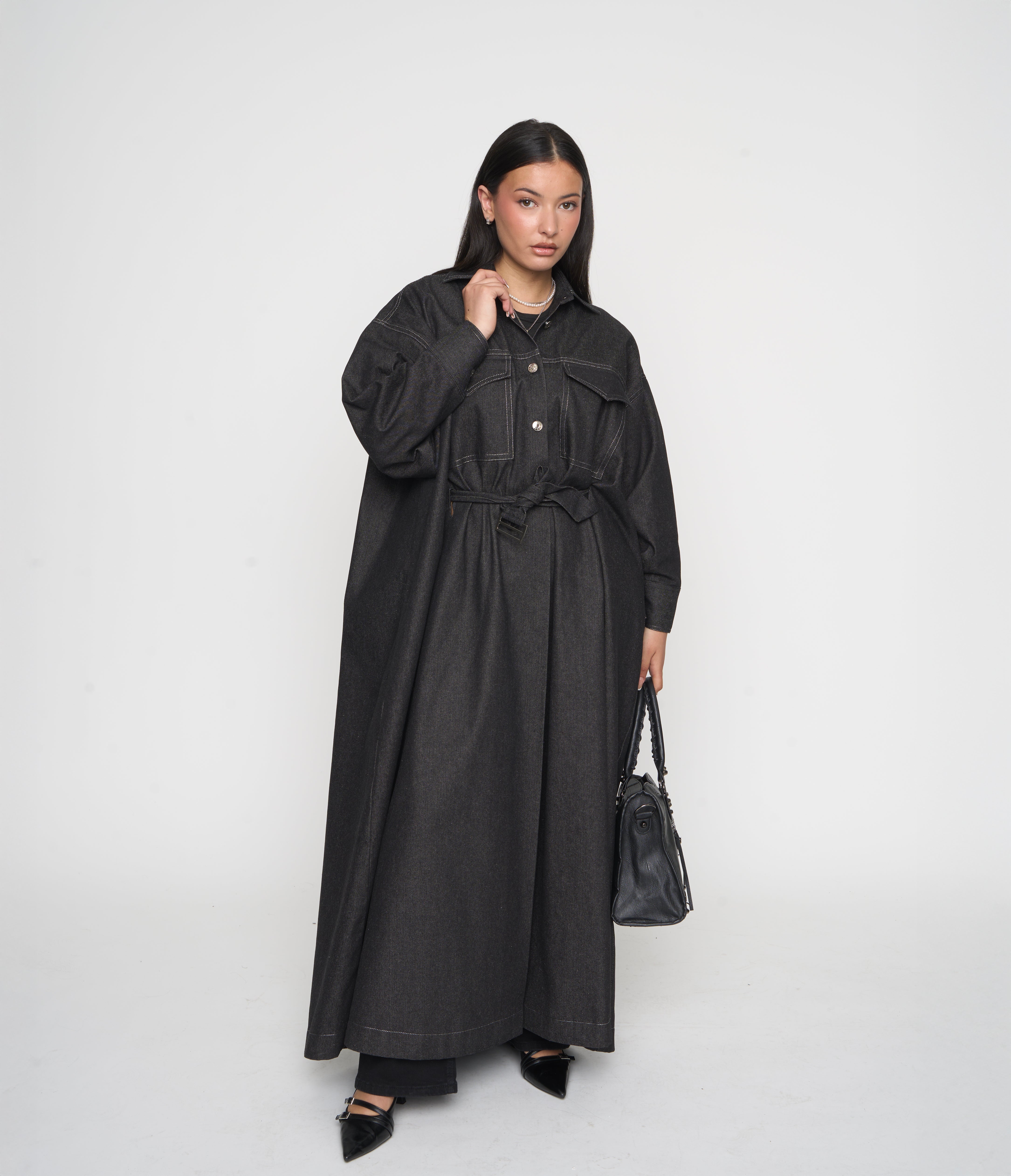 Je voulais une pièce structurée, pratique et moderne, qui garde toute la fluidité et la pudeur d’une abaya.